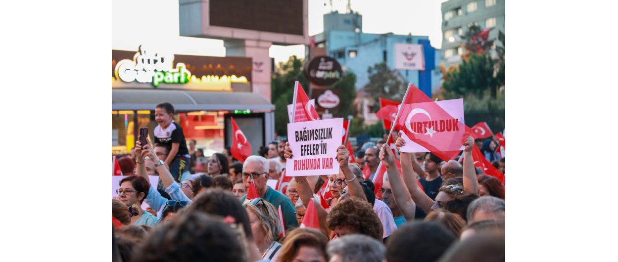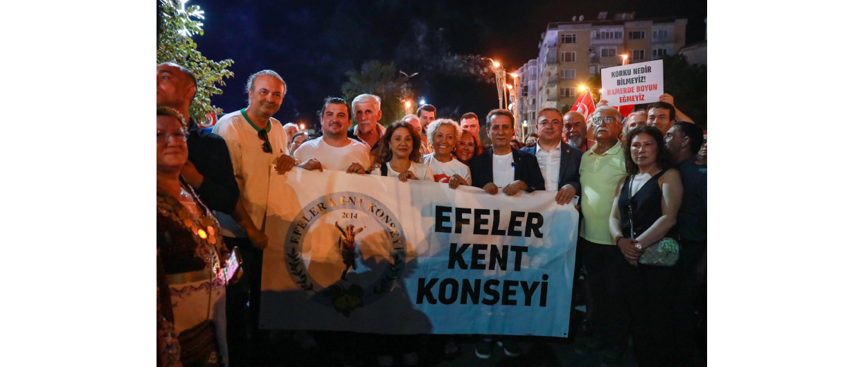 Başkan Yetişkin konuşmasının devamında, yürüyüş boyunca açılan pankartlara da dikkat çekerek, “Pankartları görüyorum: ‘Korku nedir bilmeyiz, namerde boyun eğmeyiz’ ve ‘Bağımsızlık Efeler’in ruhunda var’ yazılarını okuyorum. İşte bu anlayış, bu inanç sürdükçe biz hep bağımsız ve özgür kalacağız” ifadelerini kullandı.
