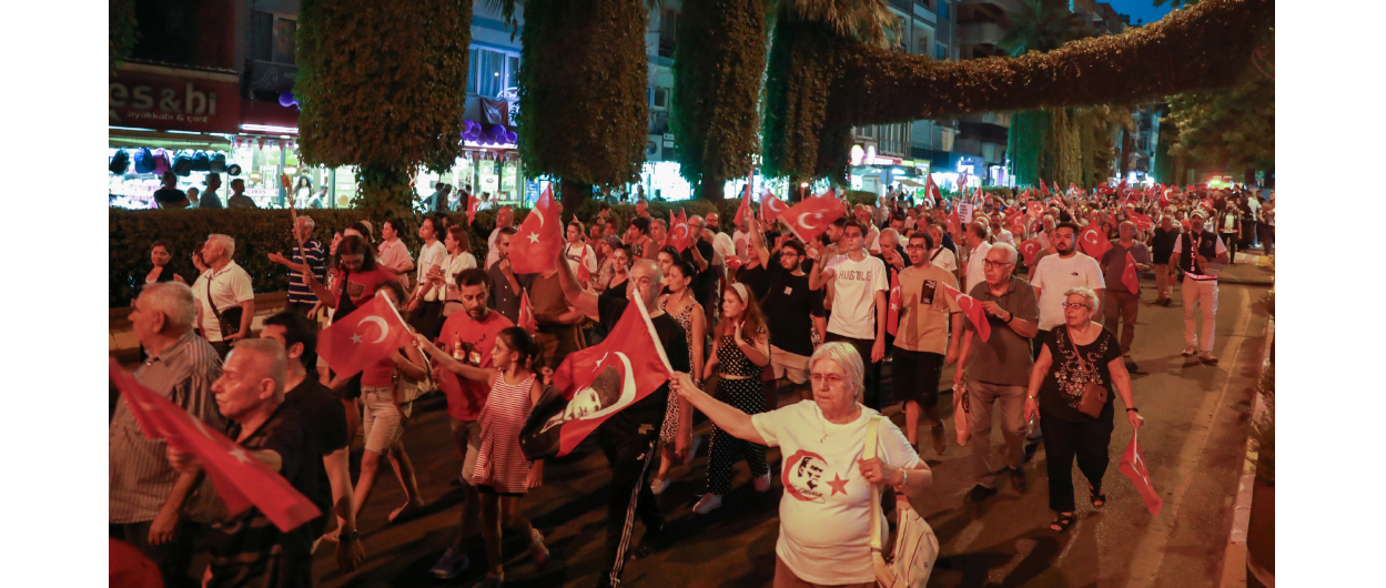 Yürüyüş, Adnan Menderes Bulvarı, Kıbrıs Caddesi, Kozdibi Meydanı ve Kütüphane Caddesi üzerinden devam ederek başlangıç noktası olan İstasyon Meydanı’nda sona erdi. Etkinlik boyunca şehrin cadde ve sokakları fenerlerin ışığıyla aydınlandı, marşlar ve sloganlar eşliğinde coşku doruğa ulaştı. Yürüyüş güzergâhında bulunan evlerin balkonlarına çıkan vatandaşlar da ellerinde bayraklarla korteje destek vererek etkinliğe ortak oldu.