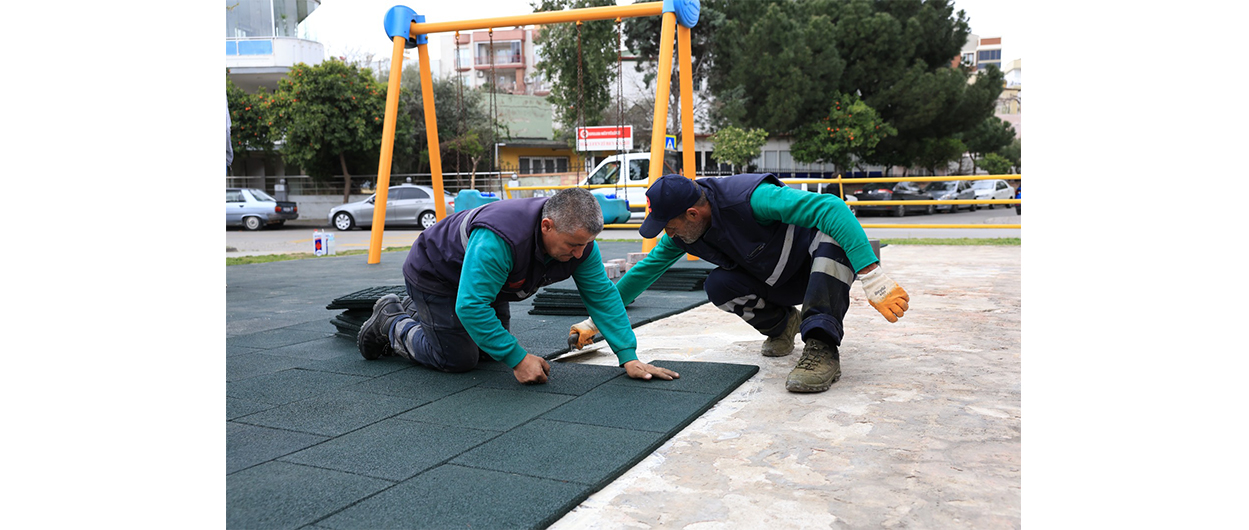 Efeler Belediyesi Park ve Bahçeler Müdürlüğü ekipleri, sorumluluk alanlarında bulunan parklarda kapsamlı bakım ve onarım çalışmalarını aralıksız sürdürüyor. Çalışmalar çerçevesinde park zeminleri yenileniyor, özellikle çocuk oyun alanlarında güvenliği artırmak amacıyla kauçuk zemin döşemeleri yapılıyor. Böylece çocukların daha güvenli ortamlarda vakit geçirmesi sağlanıyor.