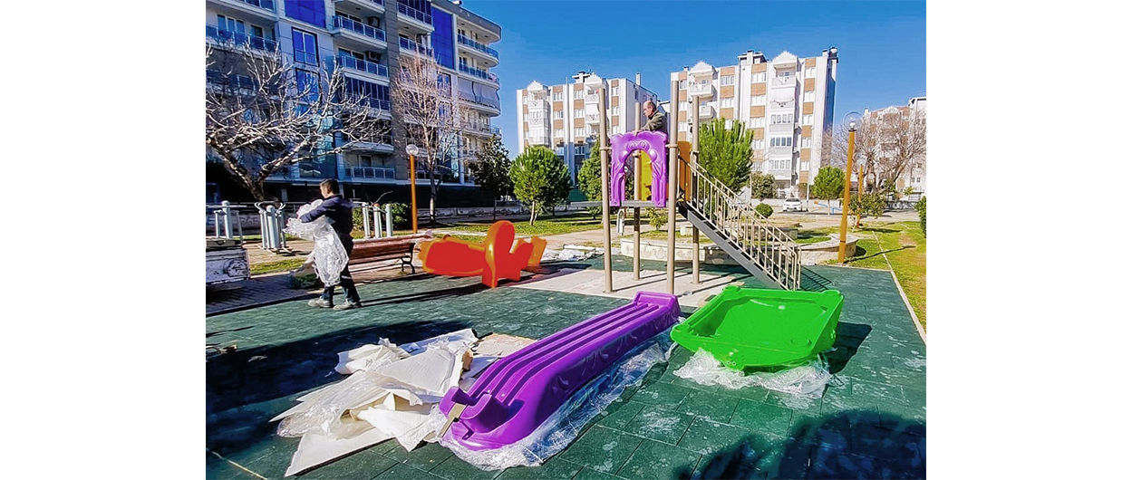 Bu kapsamda görev alan Efeler Belediyesi Park ve Bahçeler Müdürlüğü ekipleri, Adnan Menderes Mahallesi Adnan Saygun Parkı ile Mimar Sinan Mahallesi Prof. Dr. Mehmet Fuat Turgut Parkı’nı yeniledi. Söz konusu parklarda yeni oyun gruplarının montajı yapılırken, çocukların güvenliği için zeminlere yeni kauçuk döşeme uygulaması da gerçekleştirildi.