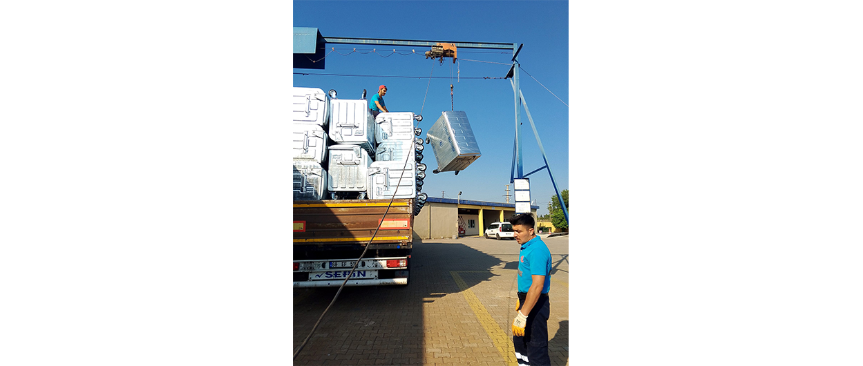 Temizlik İşleri Müdürlüğü şantiyesine ulaşan yeni konteynerler, zamanla yıpranan, hasar gören, eski konteynerlerin yerine yerleştirilecek ve ihtiyaç duyulan noktalara dağıtılacak.