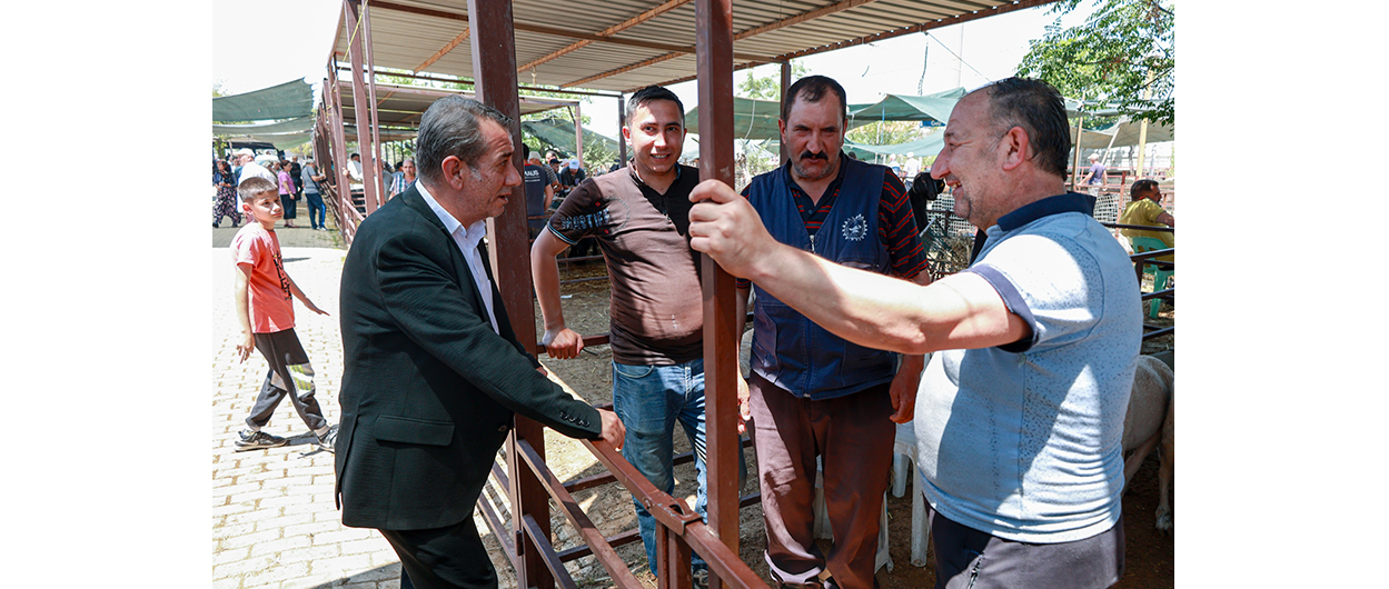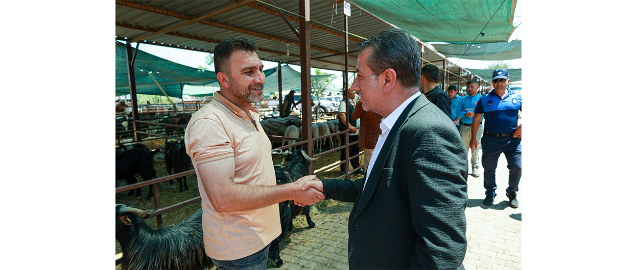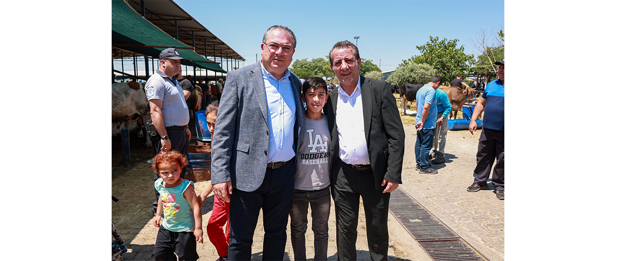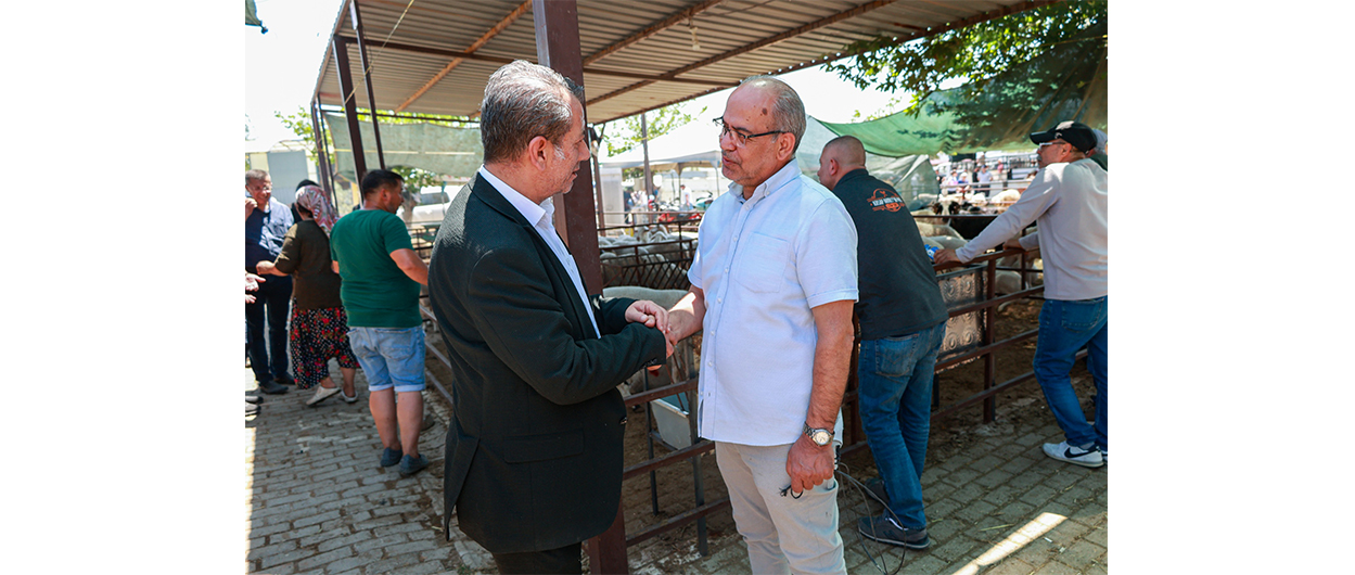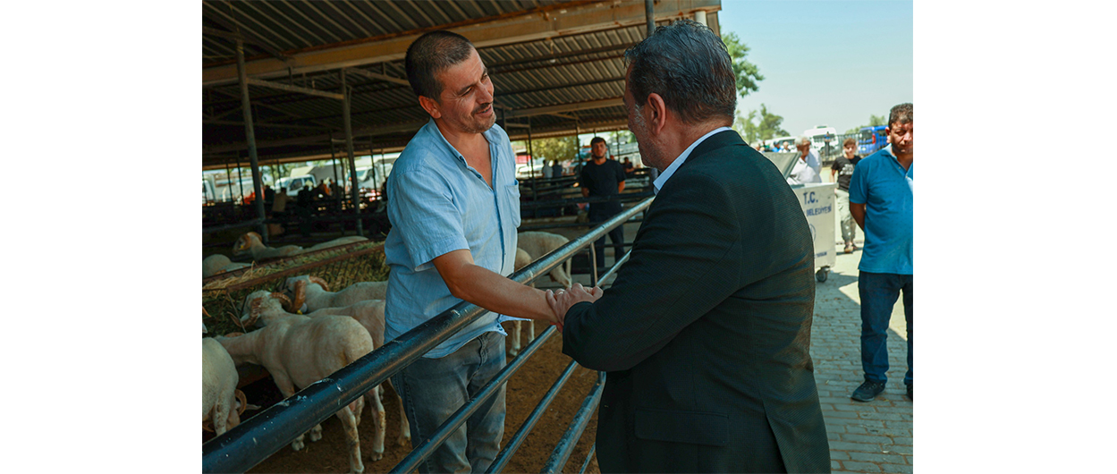 Efeler Belediye Başkanı Anıl Yetişkin, Kurban Bayramı öncesi kentin en büyük hayvan pazarı olan Çeştepe Hayvan Pazarı’nı ziyaret ederek, hem pazar esnafıyla hem de kurbanlık alışverişi yapan vatandaşlarla bir araya geldi.