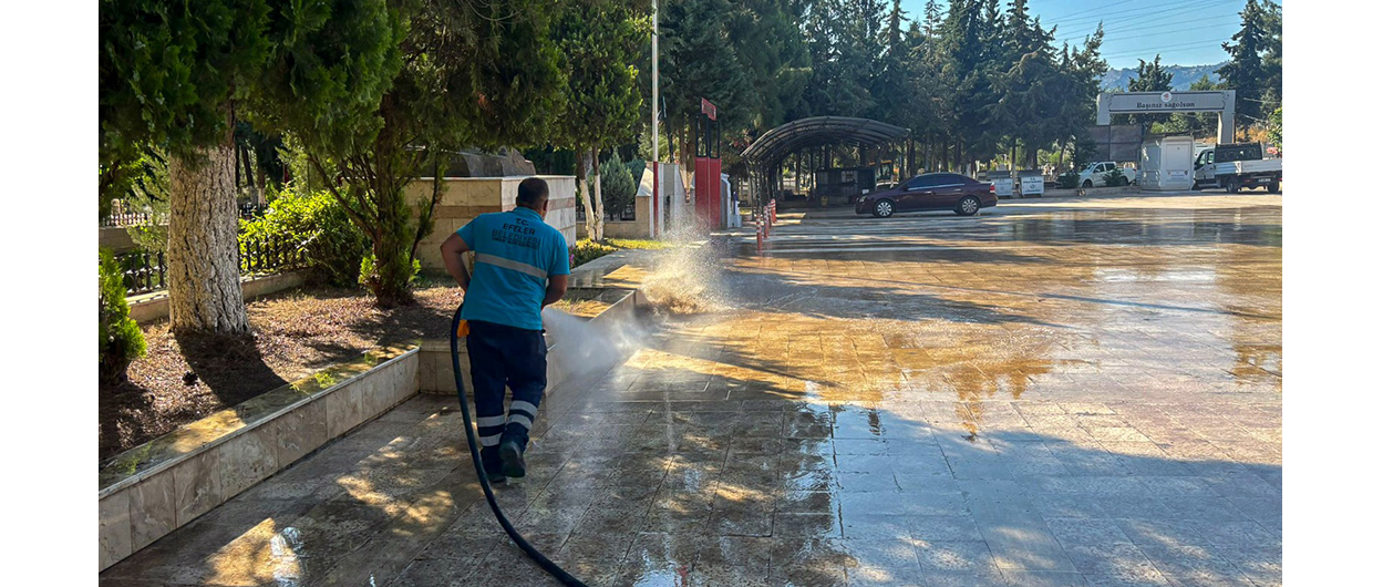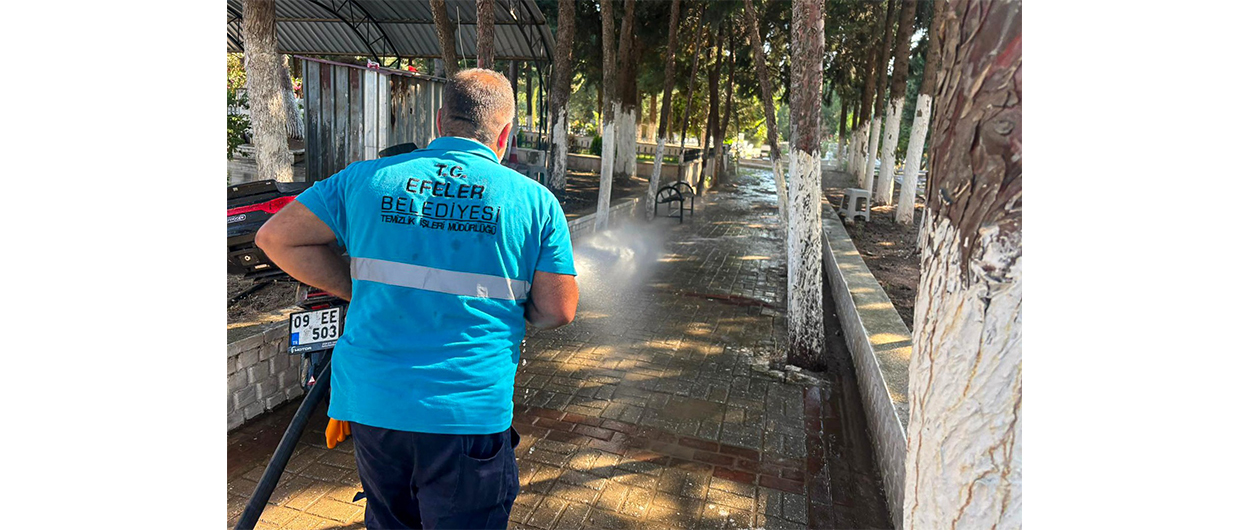 Efeler Belediyesi Temizlik İşleri Müdürlüğü ekipleri, Kurban Bayramı arifesinde ve bayram süresince vatandaşların mezarlık ziyaretlerini daha temiz ve düzenli bir ortamda gerçekleştirebilmesi için çalışmalarını sürdürdü.