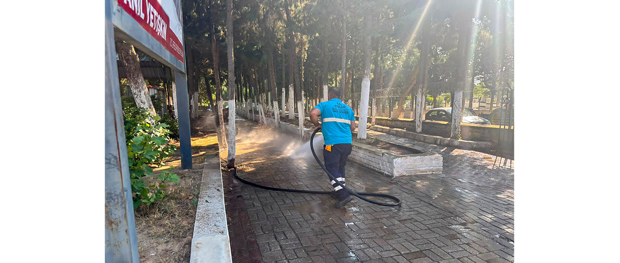 Bayram hazırlıkları kapsamında mezarlık içindeki yollar, tazyikli yıkama aracıyla yıkanarak temizlendi. Ekipler, özellikle arife günü yoğun şekilde ziyaret edilen mezarlıkları, hem hijyenik hem de düzenli hale getirerek vatandaşların ziyaretlerini huzur içinde gerçekleştirmelerini hedefledi.