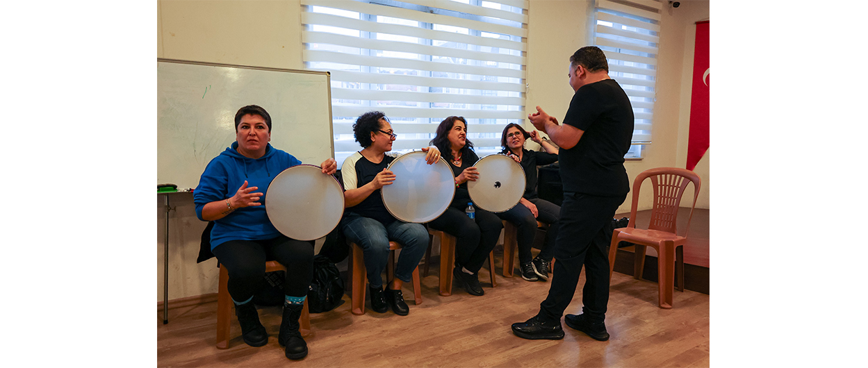 Bu kapsamda Efeler Belediyesi Müzik Akademisi yeni dönem ritim (bendir-darbuka) atölyesi, Kent Orkestrası ve Müzik Akademisi Eğitmenlerinden Hakan Arslandağ yönetiminde başladı. Milli Aydın Bankası Kültür Merkezi’nde başlayan dersler, vatandaşların yoğun ilgisiyle renkli görüntülere sahne oldu. Bendir ve darbuka eşliğinde yankılanan sesler salonu doldururken, katılımcılar, uzman eğitmenler eşliğinde temel ritim tekniklerini öğrendi. Katılımcılar hem yeteneklerini geliştirdi hem de sanatı paylaşmanın keyfini yaşadı.