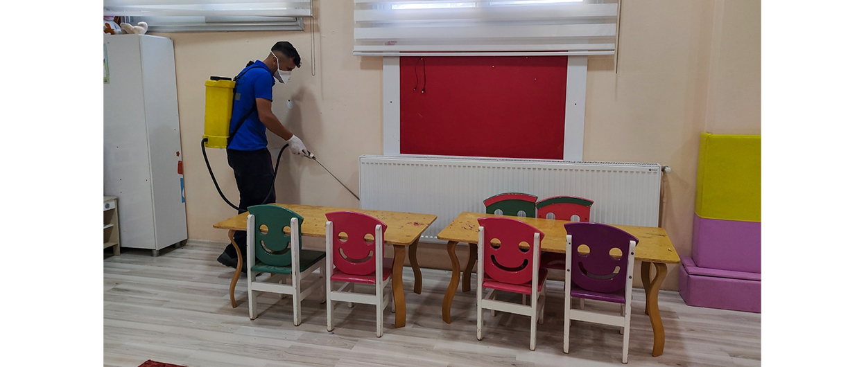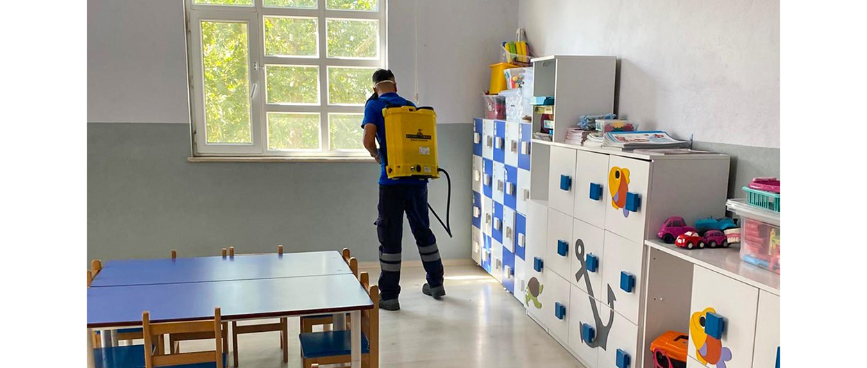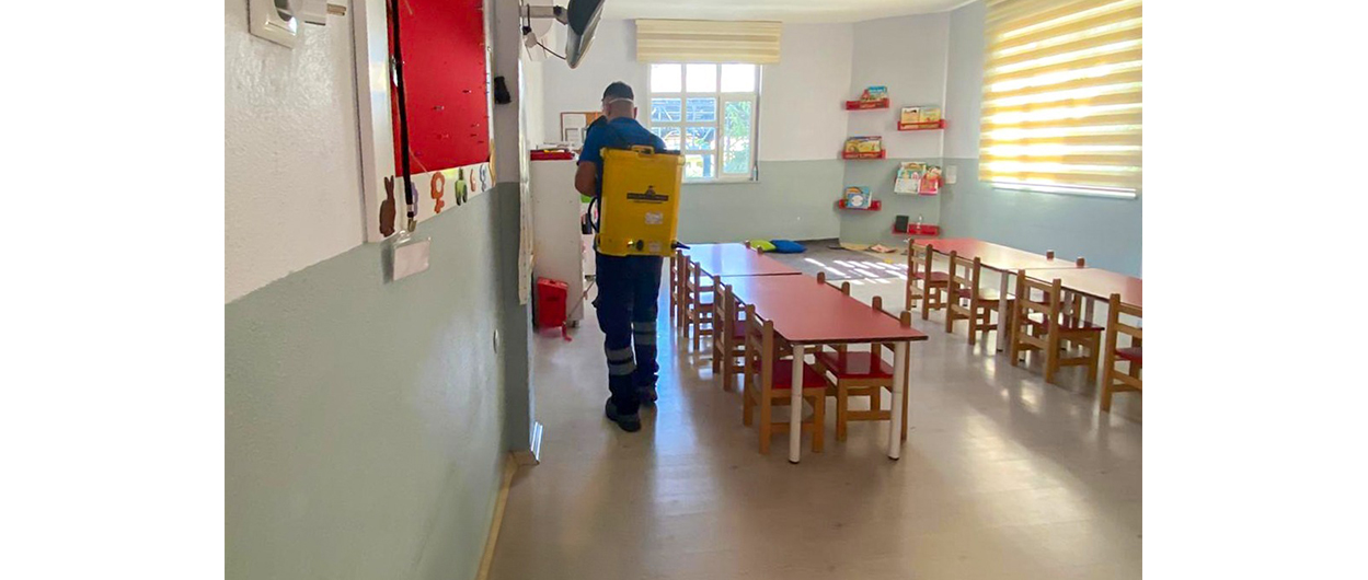 Binaların içinden dış alanlarına kadar her noktanın detaylı biçimde temizlendiği uygulama kapsamında; sınıflarda kullanılan oyuncaklar, masa ve sandalyeler, eğitim araç-gereçleri, kapı kolları, lavabolar gibi sık temas edilen yüzeyler dezenfekte edildi. Ayrıca oyun bahçeleri, yürüyüş yolları ve açık alanlarda da ilaçlama çalışmaları yapıldı. Ekipler, bu uygulamaları yalnızca dönemsel değil, yıl boyunca periyodik olarak gerçekleştirmeye devam ediyor.