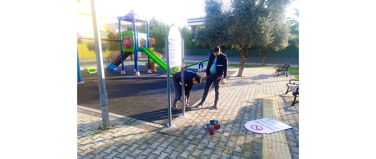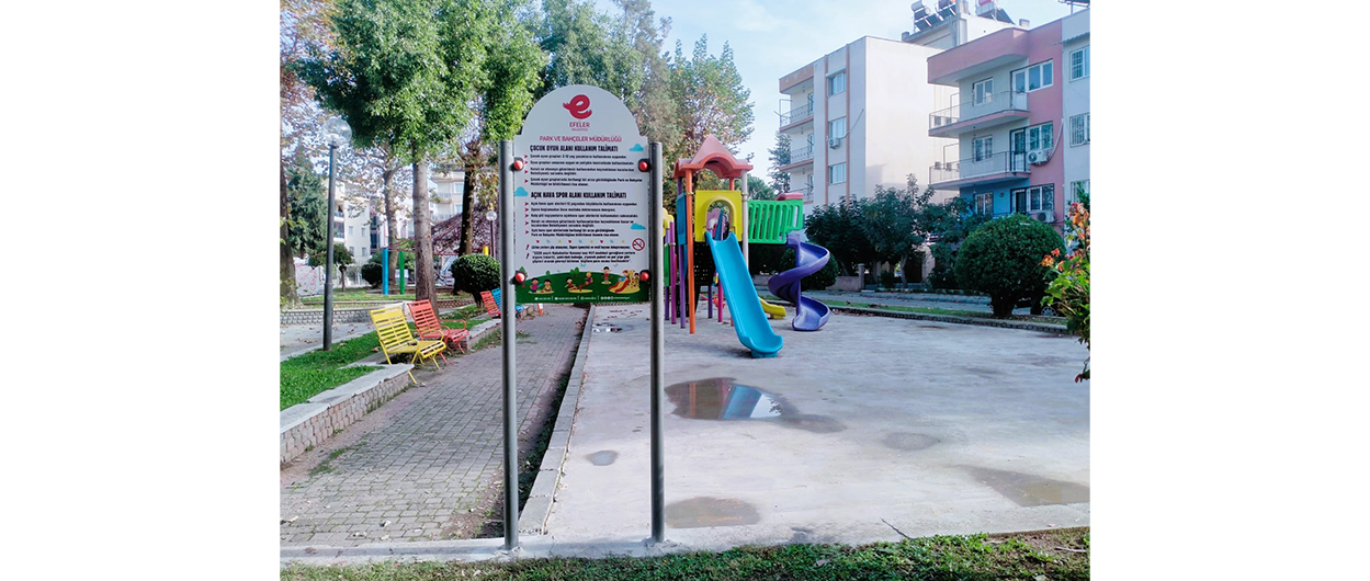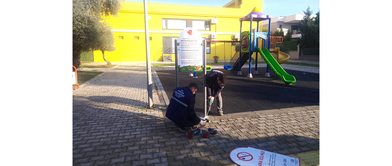 Efeler Belediyesi Park ve Bahçeler Müdürlüğü ekipleri, olası risklerin önüne geçmek amacıyla parklarda bilgilendirme panoları montajı yapıyor.