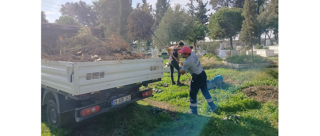 Vatandaşların, yaşamını yitiren yakınlarını daha huzurlu bir ortamda ziyaret edebilmeleri için gerçekleştirilen faaliyetler kapsamında çim biçme, yabani otların temizlenmesi, ağaç budama, yolların düzenlenmesi ve genel çevre bakımı yapılıyor.