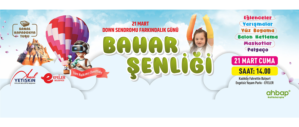 Merkez, 21 Mart Down Sendorumu Farkındalık Günü’nde düzenlenecek olan bahar şenliğine ev sahipliği yapacak. Saat 14.00’te başlayacak program kapsamında, yüz boyama ve balon katlama gibi keyifli etkinliklerin yanı sıra maskotlar ve palyaçolar eğlenceyi ikiye katlayacak. Ayrıca sanal ortamda gerçekleştirilecek Kapadokya turu ile katılımcılara eşsiz bir deneyim yaşatılacak.