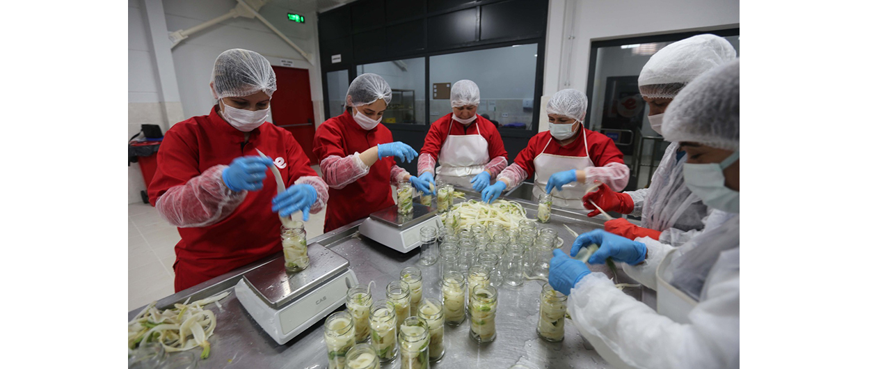 Efeler Belediyesi Kadın Emeği Tarımsal Ürün Fabrikası, kadın istihdamını artırması ve sağlıklı, uygun fiyatlı ürünleri vatandaşlarla buluşturmasıyla dikkat çekiyor. Modern makinelerle hijyenik koşullarda üretim yapılan tesiste, üretimin her aşamasında kadın emeği ve tesisin geniş üretim yelpazesi öne çıkıyor.