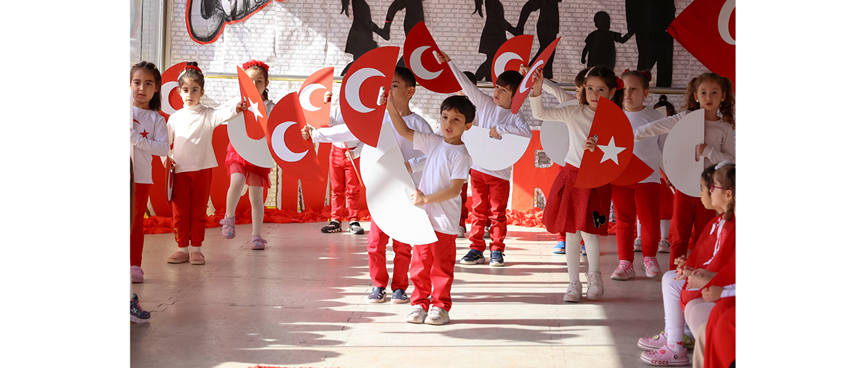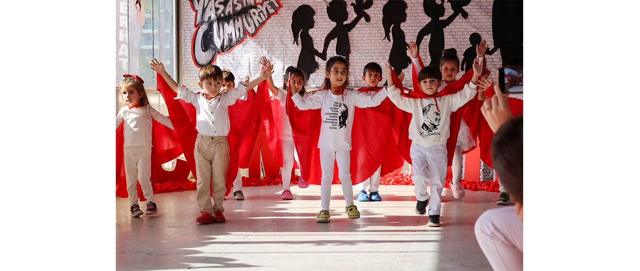 Minikler, Mustafa Kemal Atatürk baskılı tişörtleri ve ay yıldızlı Türk bayrakları ile sahneye çıktı. Ellerinde bayraklarla şiirler okuyan, marşlar söyleyen ve çeşitli oyunlar oynayan çocuklar, izleyenlere duygusal ve gururlu anlar yaşattı.