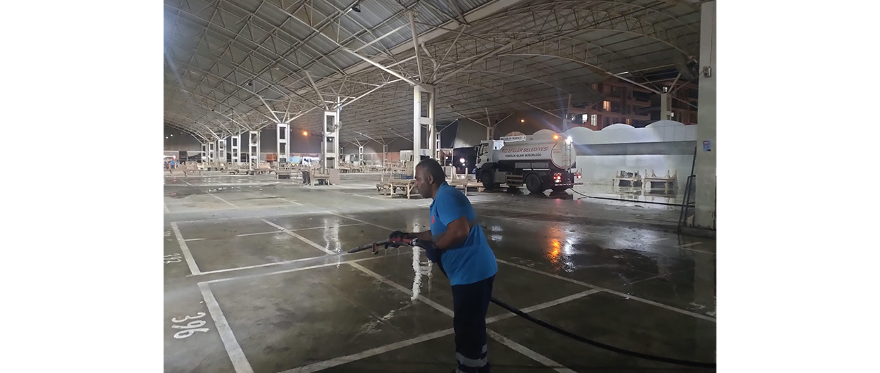 Efeler Belediyesi Temizlik İşleri Müdürlüğü ekipleri, kentin cadde, sokak ve meydanlarını adım adım temizlerken, pazar yerlerinde de titiz bir çalışma yürütüyor. Pazar esnafı ve vatandaşların alışverişlerini tamamlamalarının ardından alana gelen temizlik ekipleri, sebze, meyve ve diğer atıkları özenle süpürüp topluyor. Ardından, alan tazyikli su ile yıkanarak ilk aşama temizlik tamamlanıyor.