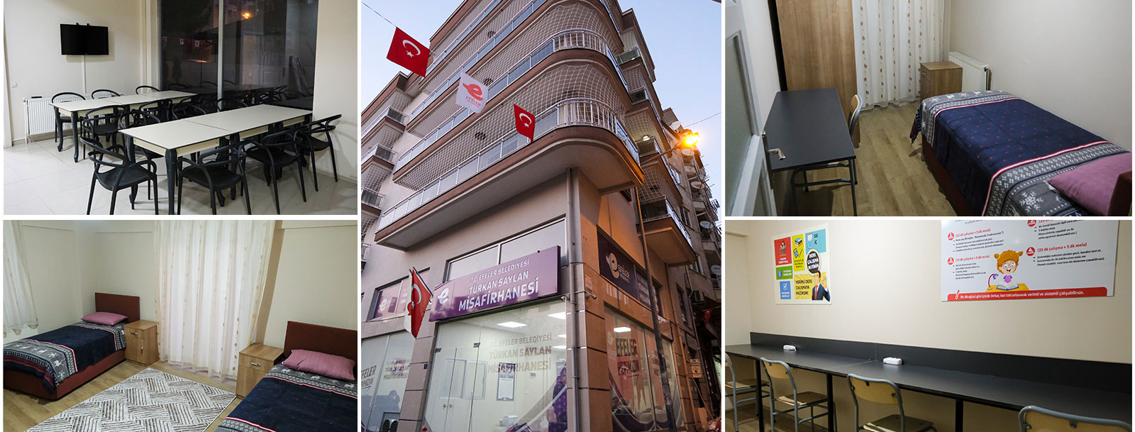 Yarının teminatı olan kadınların barınma sorununa çözüm olmak için hayata geçirdiğimiz T.C. Efeler Belediyesi Türkan Saylan Misafirhanesi; tek, iki ve üç kişilik odaları, güvenlik görevlileri ve güvenlik kameraları, konukların yemeklerini yapabilecekleri tüm araç ve gereçleriyle geleceğin aydın kadınlarına ev sahipliği yapmaktadır.