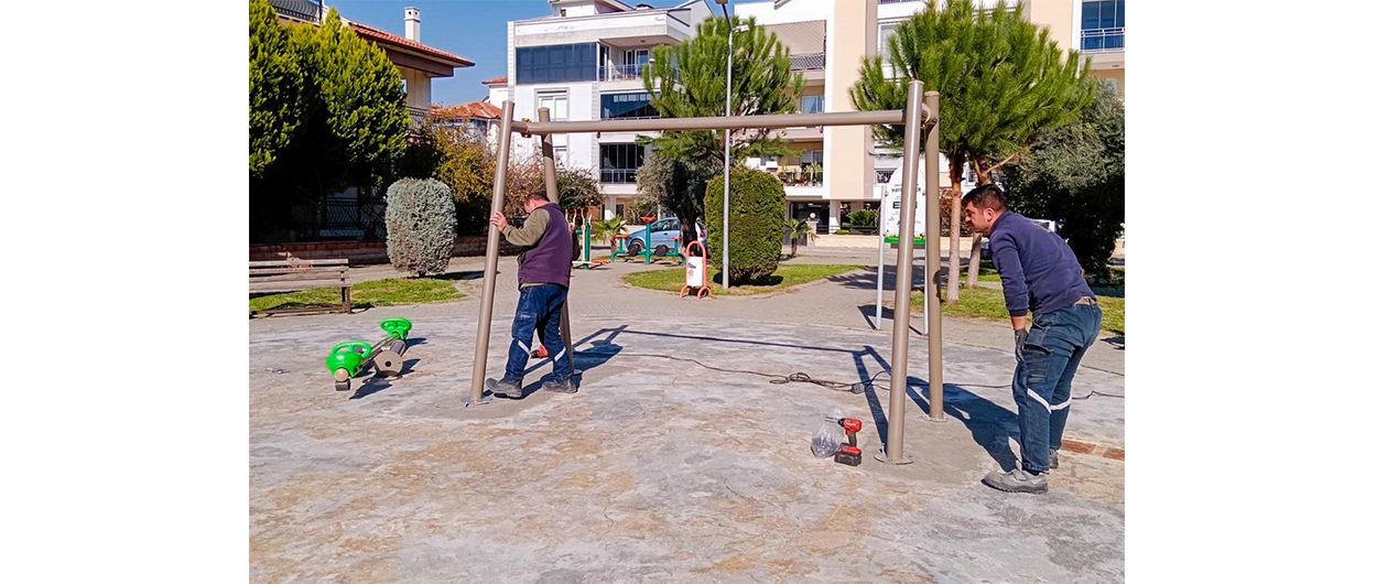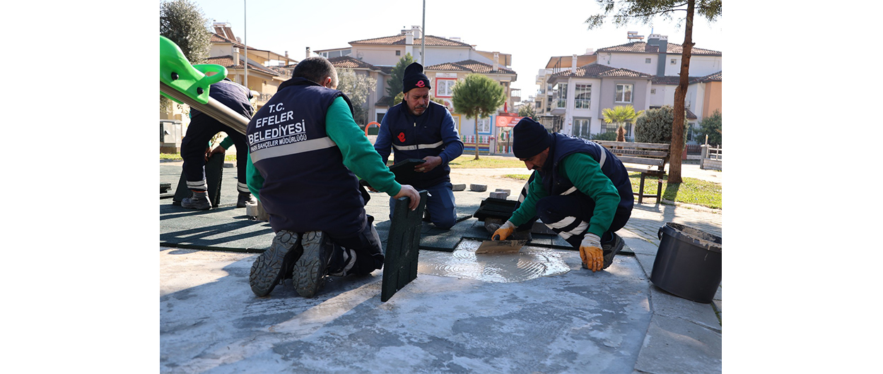 Bu kapsamda görev alan Efeler Belediyesi Park ve Bahçeler Müdürlüğü ekipleri, Adnan Menderes Mahallesi Adnan Saygun Parkı ile Mimar Sinan Mahallesi Prof. Dr. Mehmet Fuat Turgut Parkı’nı yeniledi. Söz konusu parklarda yeni oyun gruplarının montajı yapılırken, çocukların güvenliği için zeminlere yeni kauçuk döşeme uygulaması da gerçekleştirildi.