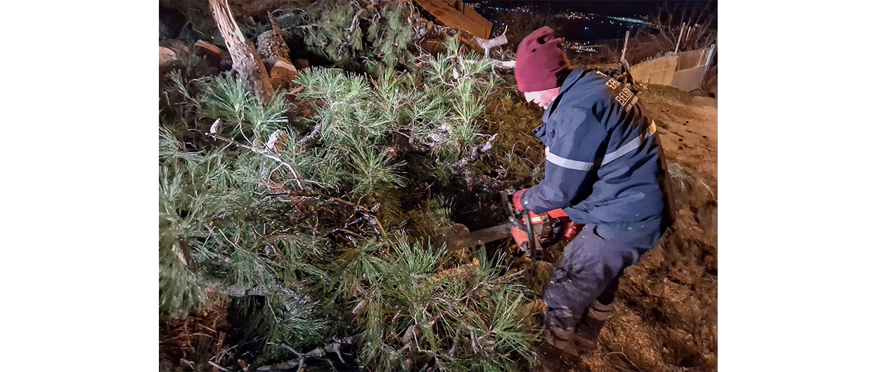 Efeler Belediye Başkanı Anıl Yetişkin’in koordinasyonunda yürütülen çalışmalarda ekipler, kent genelinde meydana gelen ihbarlara hızla müdahale ediyor. Bu kapsamda Kenger Mahallesi’nde, şiddetli fırtına nedeniyle bir evin üzerine düşme tehlikesi bulunan çam ağacına bomlu araç yardımıyla müdahale eden ekipler, olası bir facianın önüne geçti. Yapılan çalışmalarla ev halkının olası kazalara karşı güvenliği sağlanmış oldu.