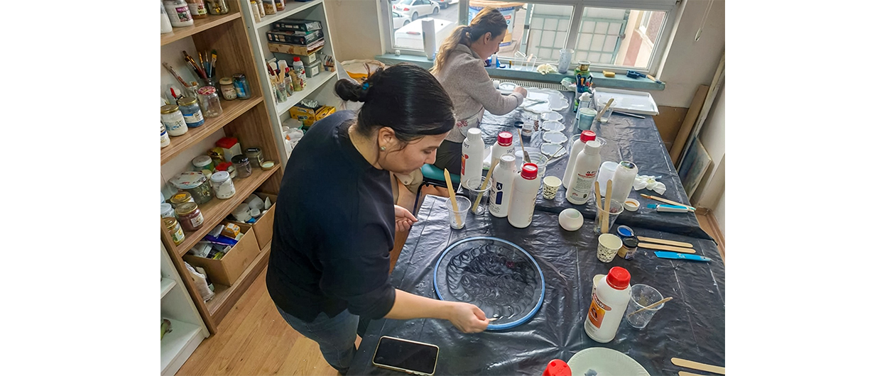 Zafer Mahallesi Hanımevi’nde açılan Epoksi Kursu, kısa sürede kadınlardan yoğun ilgi gördü. Kurs kapsamında kadınlar; dekoratif ürünler, aksesuarlar ve takı tasarımları gibi birçok alanda uygulamalı eğitim alarak üretim sürecinin aktif bir parçası oluyor.
